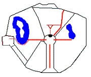 Les visiteurs entrent dans le parc par une branche de l'étoile jusqu'à une place centrale, un hub dans le jargon Disney. À partir de la place, les autres branches permettent de rejoindre des'weenies'ou'markees', points de repères facilitant l'orientation telles que des montagnes russes (Space Mountain, Big Thunder Mountain) ou des arbres exorbitants (Tarzan's Treehouse, anciennement Swiss Family Treehouse : arbre des robinsons suisses).