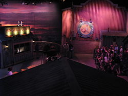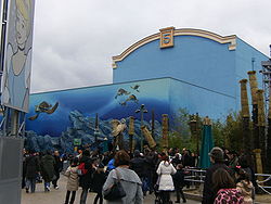 Les visiteurs pénètrent dans un grand studio des années trente dont la façade est animée par un décor rappelant les coraux et les océans, dans le style graphique du dessin animé en 3D Le Monde de Némo (Finding Nemo).