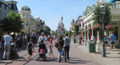 L'Emporium se situe comme dans les autres parcs Disney à gauche et le photographe à droite. Par la suite les boutiques s'agencent comme dans les autres parcs. Un fait intéressant montrant l'attention portée à l'art culinaire est la présence d'un restaurant à chaque angle des deux derniers blocs des la rue. Le Walt's et le Market House Deli au niveau de la rue transversale puis le Casey's Corner (à gauche) et le Victoria's Home-Style Restaurant (ex Gibson Girl Ice Cream Parlour) (à droite) avec leurs terrasses sur la grande place du Château.
