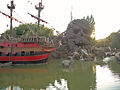 Au pied de la montagne, un lagon accueille Les mystères du Nautilus une reproduction du Nautilus sortie de l'adaptation par Disney en 1954 du roman Vingt mille lieues sous les mers, aussi de Jules Verne.