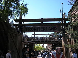 L'entrée se fait par le Fort Comstock, un fort en rondin qui sert aussi d'exposition sur Davy Crockett, Legends of the Wild West. Sur la gauche se trouve le saloon hébergeant le spectacle de The Lucky Nugget Saloon et le Last Chance Cafe. Sur la droite, le General Store nommé Thunder Mesa Mercantile Building côtoient trois boutiques d'articles liés au Far West .