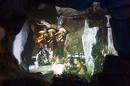 L'entrée du pavillon est marquée par une reconstitution de pyramide aztèque.