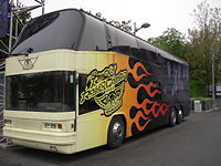 Ici c'est le périple du groupe qu'on suit avant ou pendant un concert. Le décor extérieur est nettement moins élaboré qu'en Floride et consiste en une façade décorée, avec un bus noir devant.