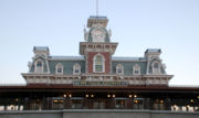 La gare de Main Street USA adopte une architecture victorienne et bien plus symétrique que celle de Disneyland. Elle est toujours l'unique d'origine du parc.