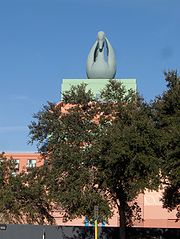 - Deux ailes symétriques en devant du bâtiment de couleur saumon et bleue (sombres pour les 3 premiers étages, plus clair pour les suivants). Leur extrémité septentrionale est surmontée d'une coquille saint-jacques positionnée à la verticale s'ouvrant en direction du Dolphin. Entre les deux ailes s'ouvrent un jardin particulièrement géométrique